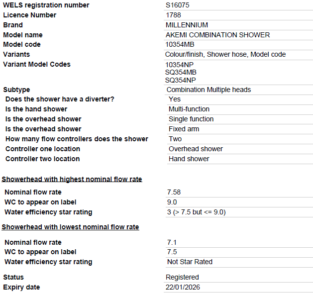 Akemi full length combination shower with fully adjustable sliding handpiece and new slimline overhead rose.