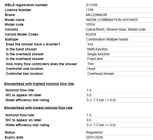 Akemi full length combination shower with fully adjustable sliding 3 function handpiece and new slimline overhead rose.