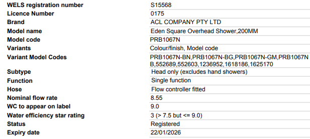 EDEN SQUARE BRASS SHOWER HEAD 200MM - PRB1067N