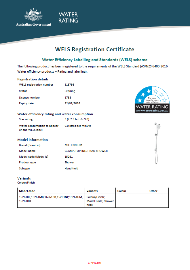 GLAMA TOP INLET RAIL SHOWER