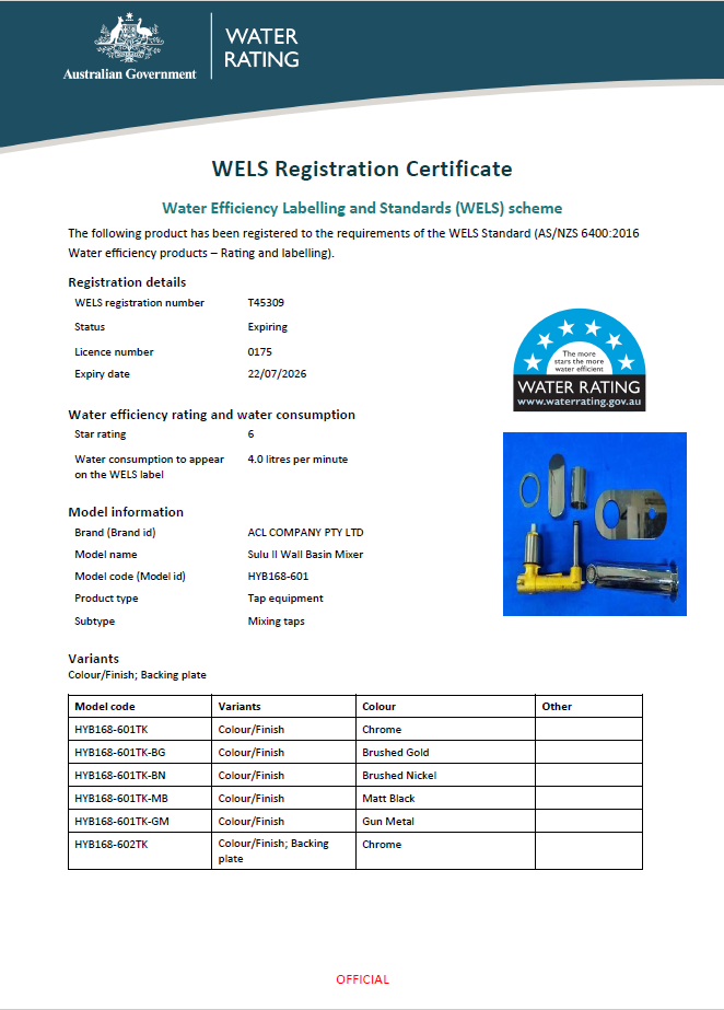 Available in 5 colours: Chrome, Brushed Nickel, Gun Metal, Black, Brushed Gold